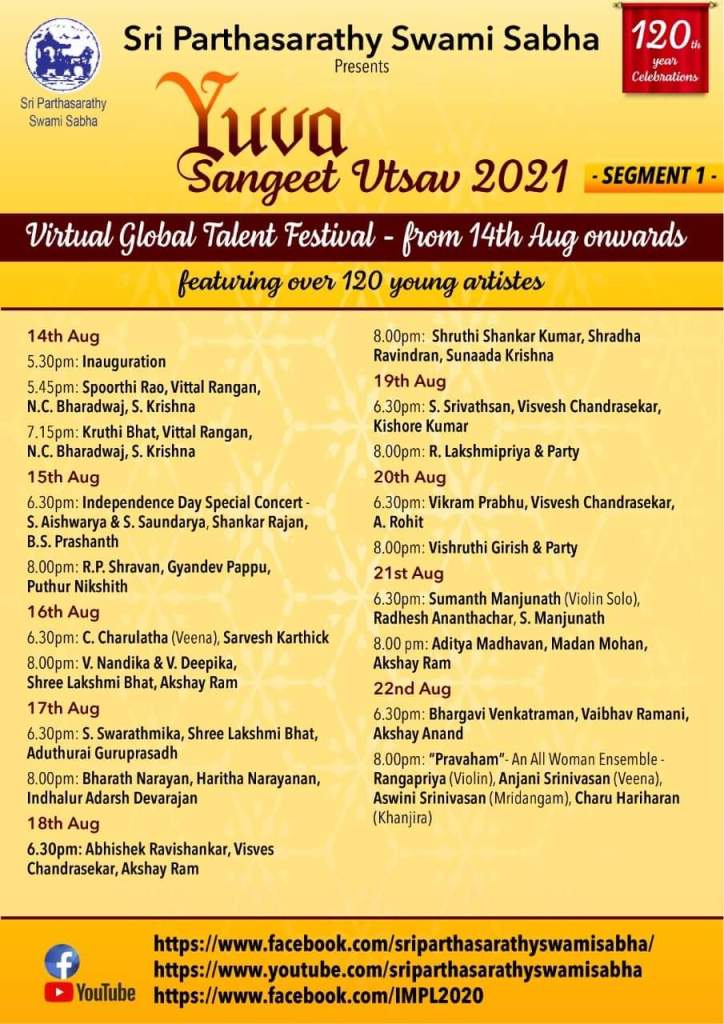 Yuva Sangeet Festival will be available in our Partha Sabha FaceBook and Youtube channels.