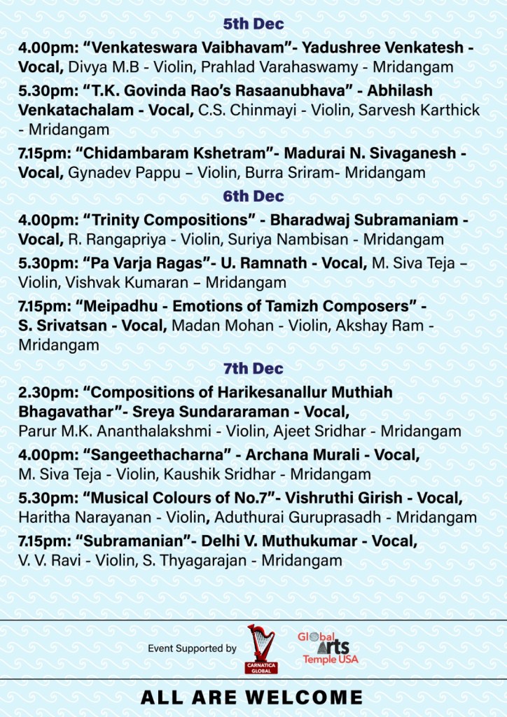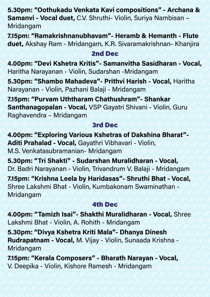 Partha Parampara Music Series 2024 November 29, 2024 Katie Nathan Events Leave a comment Presenting Partha Parampara Music Series 2024 from 30th November 2024 to 7th December 2024 Share this: Click to share on X (Opens in new window) X Click to share on Facebook (Opens in new window) Facebook Click to share on LinkedIn (Opens in new window) LinkedIn Click to share on Pinterest (Opens in new window) Pinterest Click to share on Telegram (Opens in new window) Telegram Click to share on WhatsApp (Opens in new window) WhatsApp Click to share on Reddit (Opens in new window) Reddit Click to email a link to a friend (Opens in new window) Email Click to print (Opens in new window) Print Like Loading...
