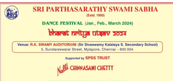Sri Parthasarathy Swami Sabha celebrates classical dance forms through our Bharat Nditya Utsav at RK Swamy Auditorium from January through March 2024. The schedule is